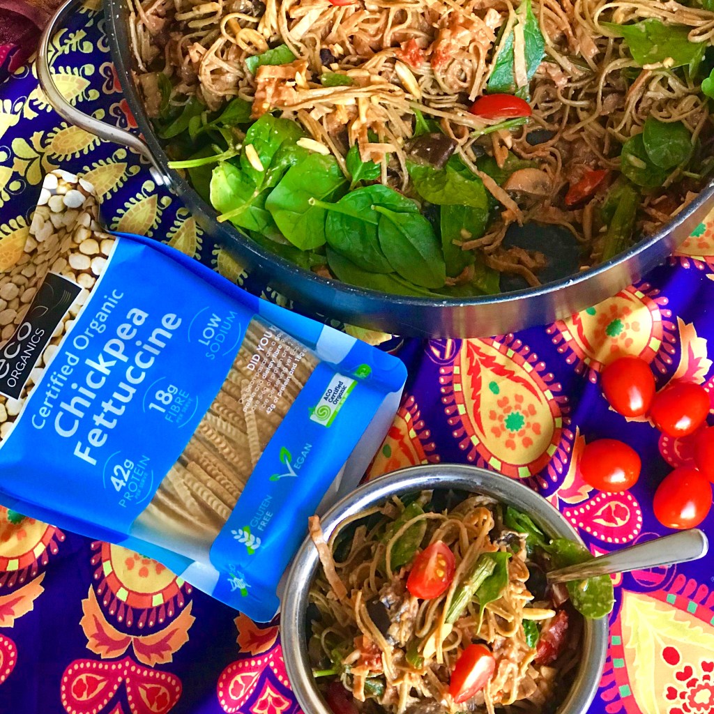 The chick pea fettuccine I used is good for you – especially in a vegan diet. It contains per serving 42g protein and 18g of fiber. It think is so important to look for alternatives in some foods like pasta which contain higher and better dietary minerals and vitamins. Bean pasta are an amazing source compared to regular wheat pasta. You can either make your own cashew butter by placing 250g of cashews in a thermomix and blending them for around 20 minutes, just keep scraping down the sides so everything gets blended properly. Or you can pick some up at your local health food shop. So the recipe and method is below enjoy this delicious pasta and please tag me in your creations 💜