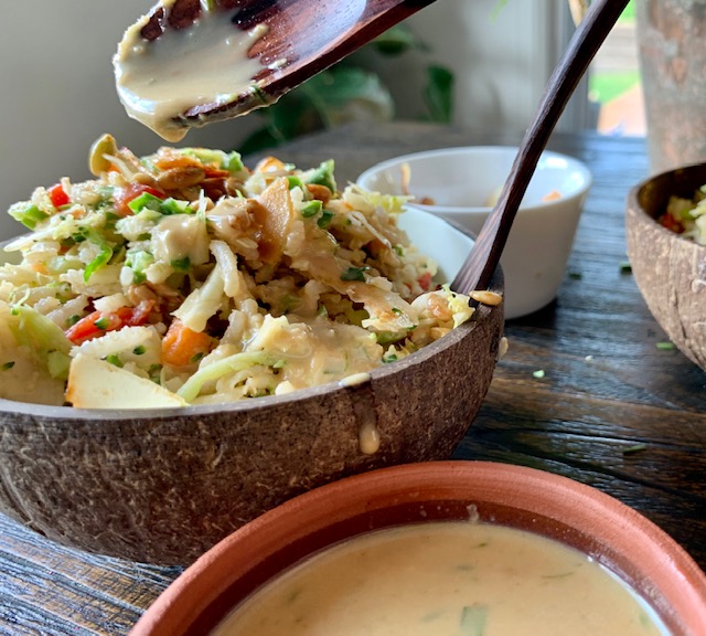 It has been so muggy here at the moment, the summer weather is bringing moments of rain and then the sun comes back out and it gets so hot! Not complaining though I am so fortunate to live on the Gold Coast and I do prefer the warmer weather, longer days and more time to get creative with dinner ideas. With this sort of weather I love eating raw veggies with yummy dressings. At the moment I have been experimenting with Thai and Asian influenced ingredients to create some new dressings to top off my salads.