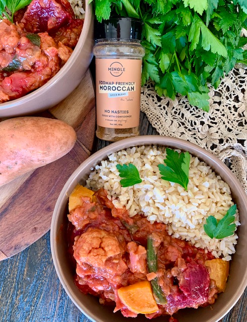 For this recipe I used a Moroccan Spice by @mingleseasoning – I ordered this online. It is also Fodmap Friendly too – so for this recipe if your a sensitive to leek you can leave it out of the recipe and saute the spices in with the Beetroot and Sweet Potatoes.