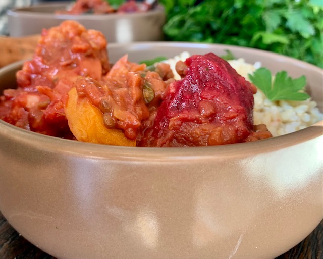 As the winter months approach here, I crave obviously more warming and comforting meals. I can’t ever complain living on the GC – however I do feel the cold, some days people must think I’m going to the snow 🤣. Anyway, I had some lovely beetroots and wanted to try them in a stew/curry of some sorts. Somehow I ended up with this delicious Moroccan meal – my neighbours absolutely raved about it, I love getting their feedback because they don’t usually cook or purchase the type of food I give them. The sweetness from the beetroots compliment the spices and the other veggies – plus it’s something different!