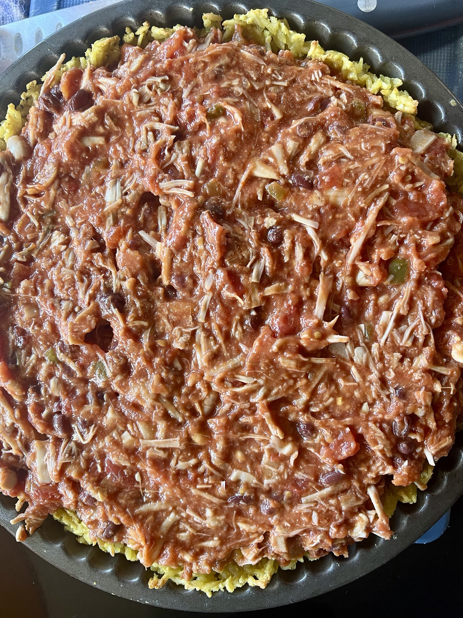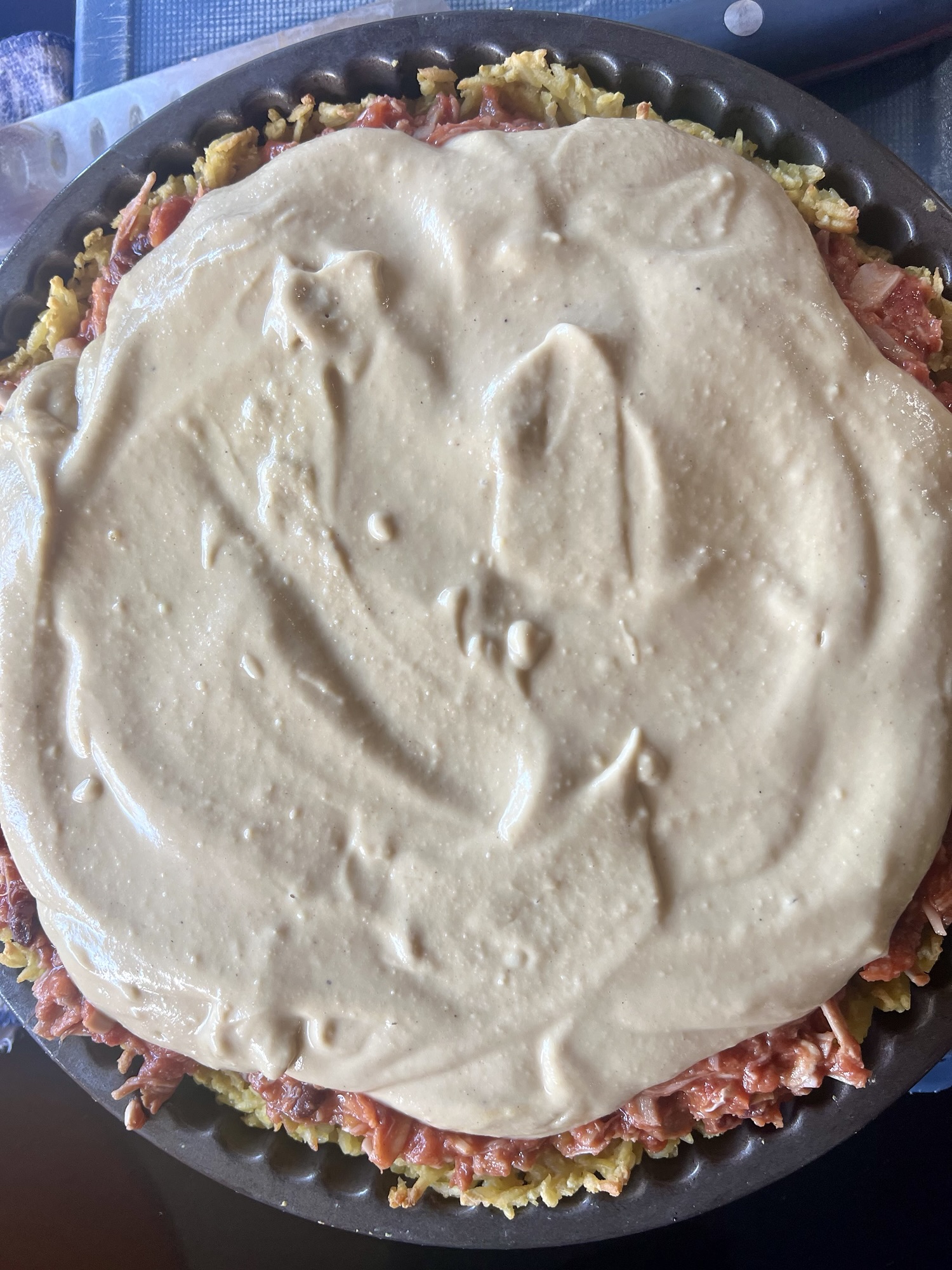 Risoni Pie Base – Mexican Jackfruit Filling – Creamy Cashew Sauce