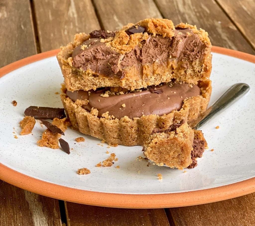 This chocolate tart is so delicious with a yummy twist that makes it even more addictive, Biscoff. The caramel biscuit spread is hidden on the bottom of the tart. The smooth chocolate mousse is on top. This combination makes this tart absolutely divine. This recipe is quick and simple to make with only 10 ingredients. The longest part is waiting for the mousse to set.